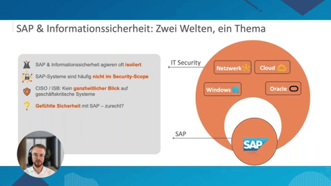 Die meisten Unternehmen stellen SAP oft nicht in den Fokus ihrer allgemeinen Informationssicherheitsstrategien. Doch genau hier lauern Risiken. Im Vortrag gehen wir genau darauf ein und Sie erfahren, wie Sie SAP-Sicherheit effektiv mit den Anforderungen des Informationssicherheitsmanagements verbinden und so Audits, Compliance-Anforderungen und Sicherheitslücken erfolgreich adressieren.
