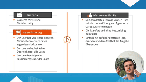 Viele Service-Teams möchten ihre Zeit lieber in persönliche Kundenbetreuung und komplexe Anliegen investieren. In der Praxis stehen jedoch oft Routineaufgaben, die Nutzung verschiedener Tools sowie knappe Ressourcen im Weg. In unserem Webinar erfahren Sie anhand konkreter Beispiele aus der Praxis, wie die Salesforce Service Cloud mit KI dabei unterstützen kann, Prozesse zu automatisieren und den Arbeitsalltag spürbar zu erleichtern.